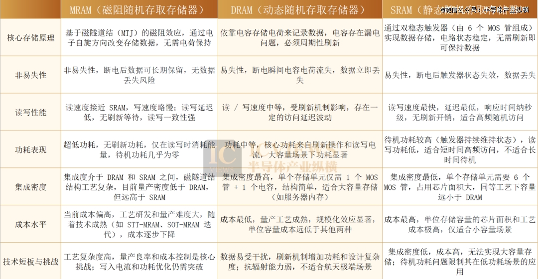 在众多候选技术中,磁阻随机存取存储器(MRAM)凭借卓 越性能脱颖而出,成为太空存储领域的潜力新星。MRAM 对太空辐射引发的单粒子翻转效应具备天然免疫力,拥有近乎永 久的使用寿命;同时兼具对称读写速度与超低运行功耗,相较于同密度动态随机存取存储器(DRAM),实现了“速度更快、功耗更低” 的双重突破,完 美适配长距离太空飞行的能源约束需求。在航天器远离太阳、太阳能供电受限的场景下,MRAM 的低功耗优势尤为突出,可在降低系统能耗的同时,承载更多在轨数据处理任务,大幅降低太空任务的失败风险。日本发射的地球观测卫星 SpriteSat,便已将其磁强计子系统的存储器升级为 MRAM,验证了该技术的太空应用价值。