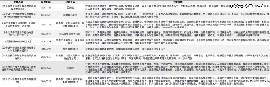 到了 2025 年政策推进节奏进一步加快:1 月,商务部、国家发改委等部门接着推出 48 条具体举措,9 月的《关于扩大服务消费的若干政策举措》更是把落地路径细化到位,近期总工会等部门还重点提到了文体产业…