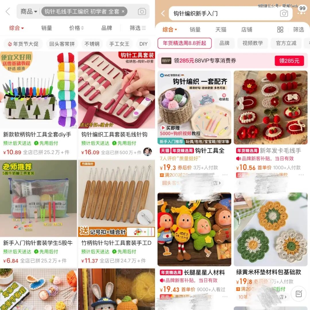 在淘宝,关于钩针编织工具、毛线、新年主题针织发卡等,也成为近期热销爆款。