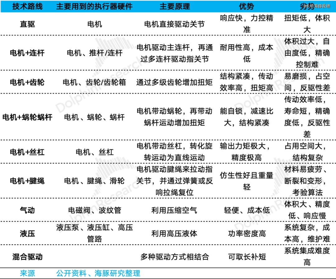 表:执行器技术路线比较