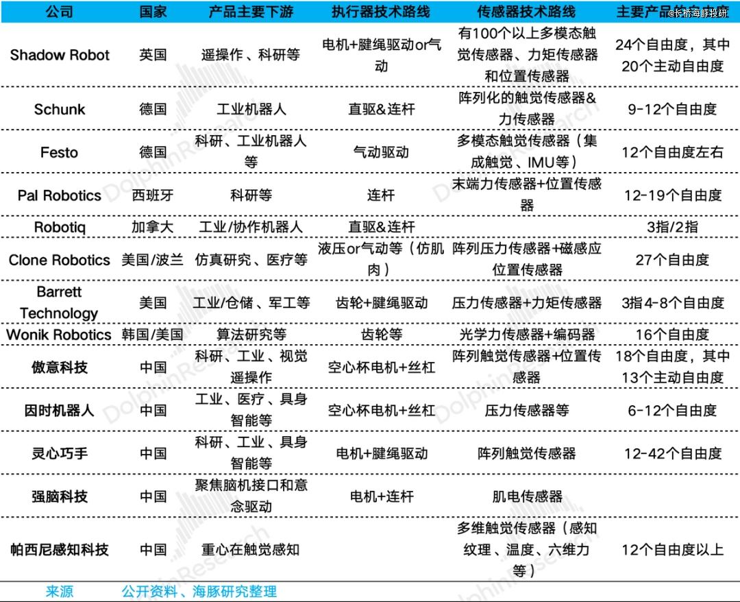 表:灵巧手公司梳理
