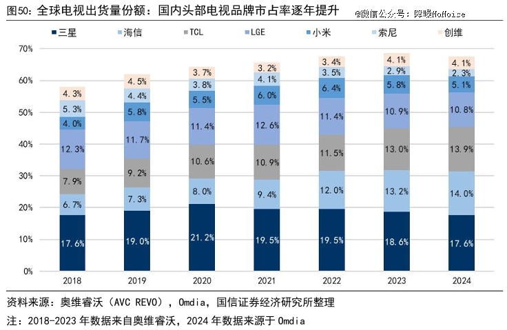 事后回看,这个判断还真不是谦虚。此后一年,TCL、海信的全球出货量先后超过LG;2024年四季度,TCL还在全球高端电视出货量首次超越LG。
