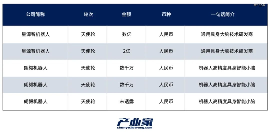 然而,由于这些公司掌握着具身智能的核心算法与基础模型,他们在早期就表现出了惊人的吸金能力。例如以星源智机器人为代表的具身智能大脑厂商,一年内拿到了两轮天使轮融资,融资金额数亿元;以朗毅机器人为代表的具身智能小脑厂商,在过去一年也获得三轮天使轮融资。