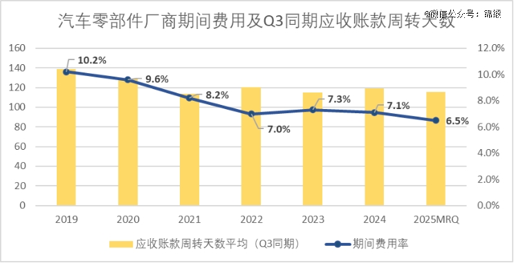 带动净利率增长最为明显的就是反内卷的成效,去年轰轰烈烈的60天账期承诺,以及工信部开通的车企账期维权渠道,实打实带动了车企账期的下滑,以三季度同期来看,2025年较2024年平均应收账款周转天数下降5天。
