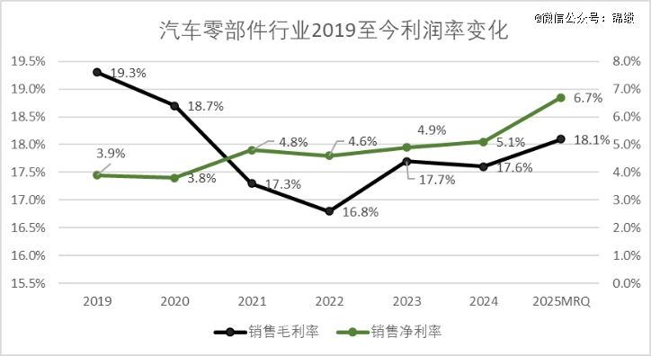 图:汽车零部件行业2019至今利润率变化,来源:企业财报