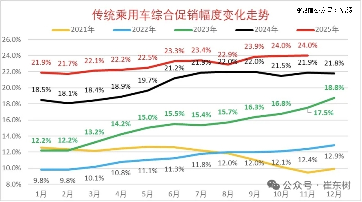 图:传统乘用车综合促销幅度变化走势,来源:崔东树公众号