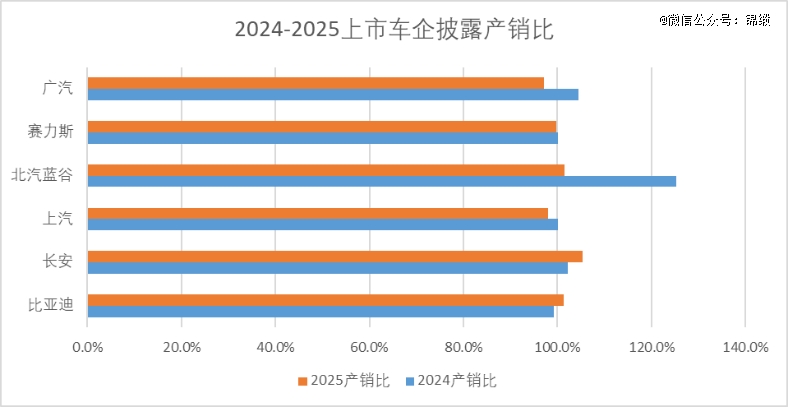 图:2024-2025上市车企已披露产销比,来源:企业产销快报
