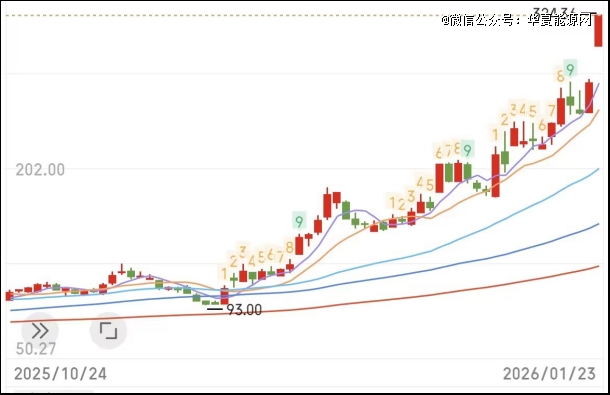 华夏能源网(公众号hxny3060)注意到,不仅仅是迈为股份,沾边的概念股都有非常惊人的表现。近2个月内(2025年11月24日收盘至1月23日收盘),钧达股份涨超250%、奥特维涨超230%、东方日升涨超190%、琏升科技涨超150%......