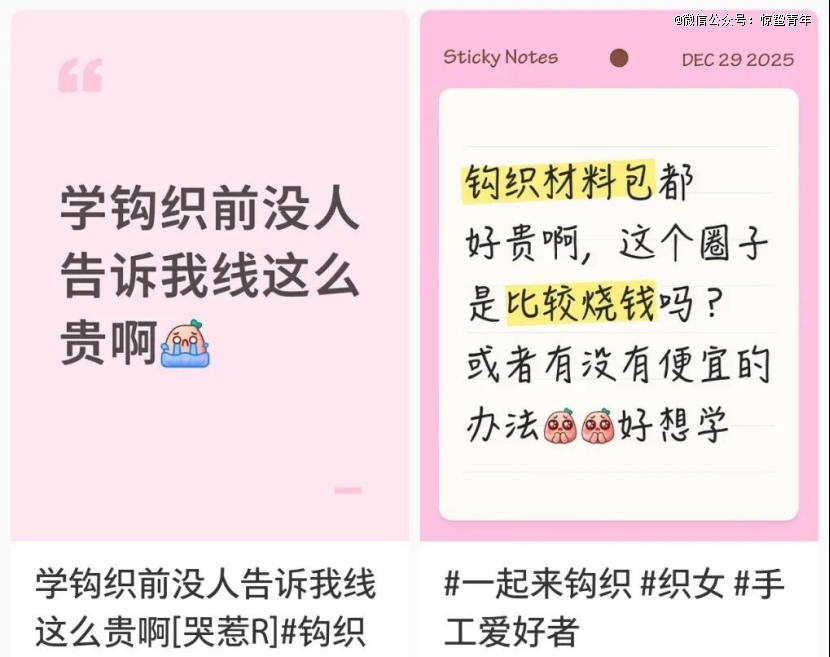 而对一些年轻人来说,用两三百块钱的毛线织出2600元大牌同款,这一行为本身便带着些许反抗消费主义的意味,成就感更是拉满。