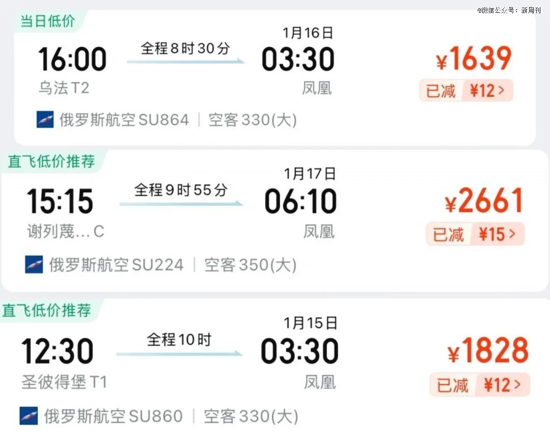 乌法、莫斯科、圣彼得堡等城市都有直飞三亚凤凰机场的航线。(图/网页截图)