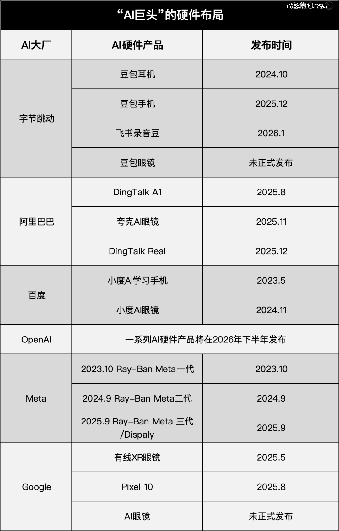 在这一背景下,AI眼镜成为AI巨头切入硬件赛道的*个共识。