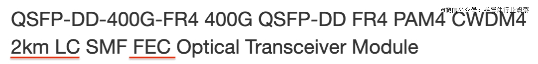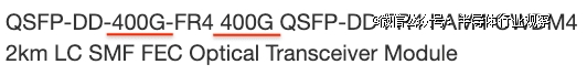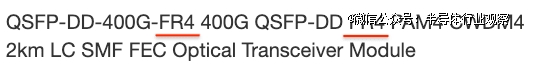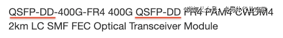 让我们根据上面所示的模板,对上面示例中的产品名称进行分解:QSFP-DD-400G-FR4 PAM4 CWDM4 2km LC SMF FEC ,并深入探讨其各个方面。
