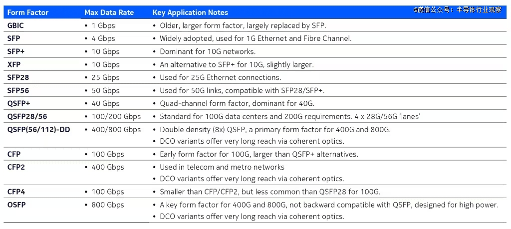 下表是一个方便的参考表,可以快速识别光器件中最常用的 SFP 可插拔模块。
