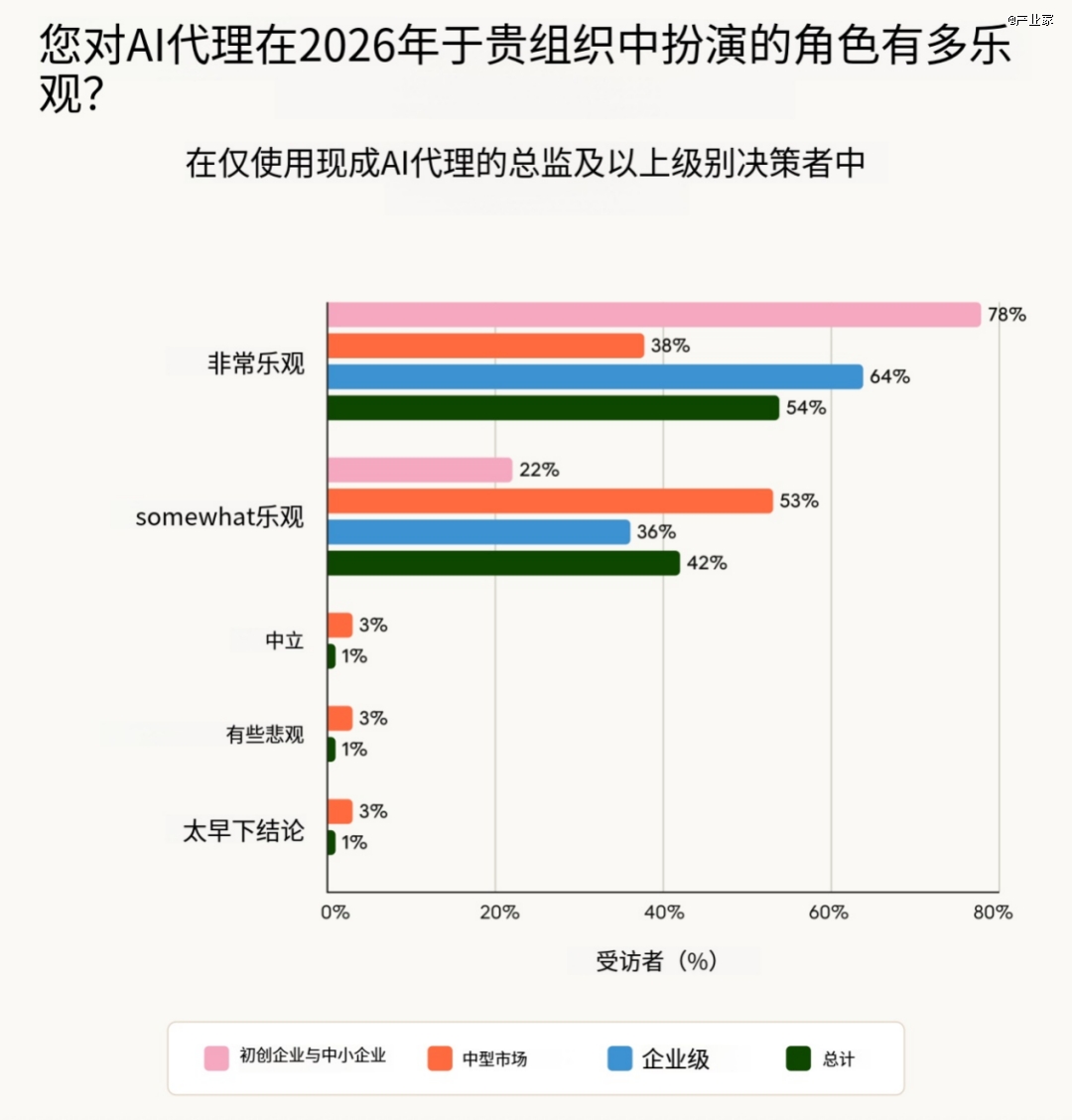 所有领域的组织都期望人工智能智能体在 2026 年能带来显著的业务影响,其中企业对这项技术的潜力表现出尤为强烈的信心。