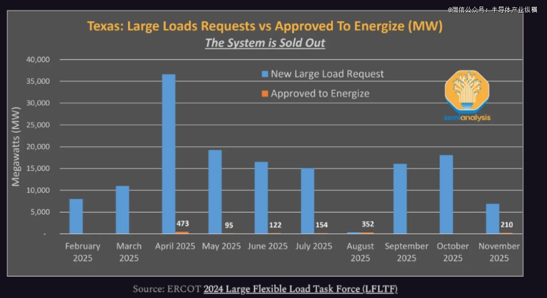 德州ERCOT为例,2024—2025年间,数据中心提交的新增负荷申请规模高达数十GW,但同期真正获批并成功接入的新增负荷,仅约1GW。对于美国来说,电网并非没有电,而是慢到无法匹配AI的节奏。