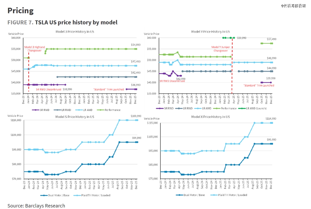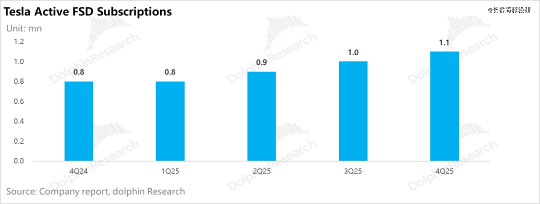 但由于Q4同样也有高价版推出(Model 3/Y的高性能全驱版),以及还有FSD订阅量上升对卖车收入端的贡献(FSD订阅量新增10万辆至110万辆),单价下滑幅度低于市场预期。