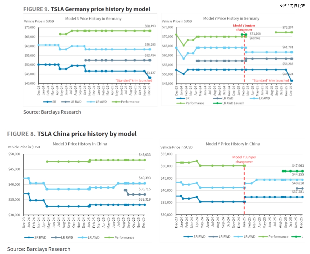 ① 中国市场:四季度是Model Y L的完整交付月,同时四季度中国市场有因2026年购置税退坡的抢购效应,以及传统旺季,特斯拉在中国零售销量还在环比上行。