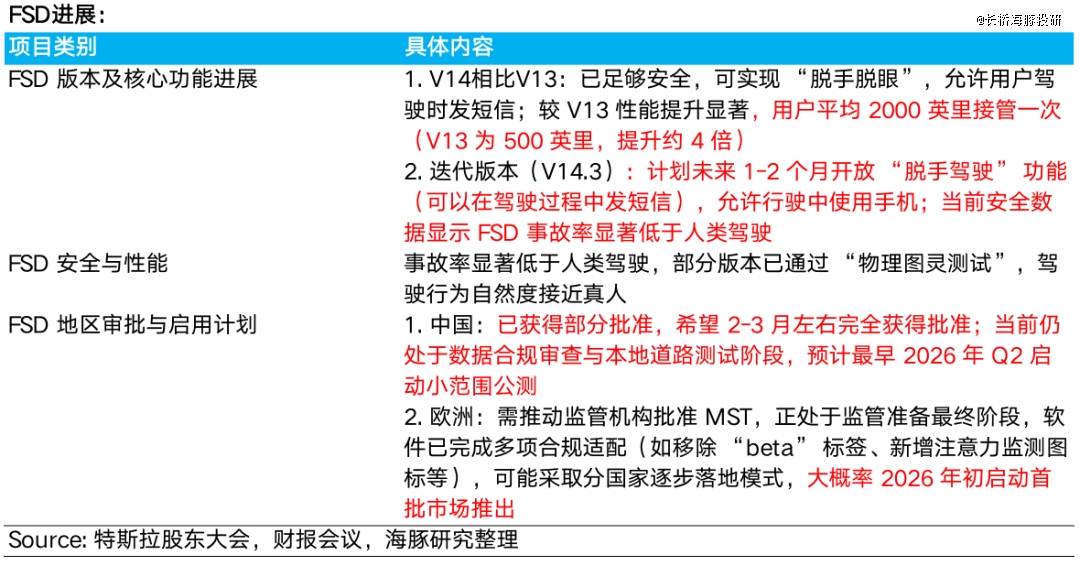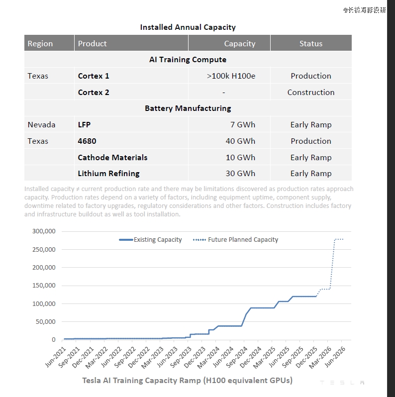 ② 为支持 Optimus 与自动驾驶训练,公司正大幅增加算力投入(特斯拉正在德州工厂建立cortex 2, 预计2026年上半年将计算资源规模再提升到当前的1倍以上,预计相当于超25万的等效H100水平);