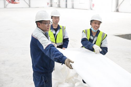 作为东方雨虹“贸易+投资+并购”海外发展战略的标杆项目,天鼎丰沙特工厂的落地投产尽显企业国际化布局的精准与高效。从2024年顺利签约,到2025年2月启动建设,再到如今两条生产线率先投产,项目的快速推进,正是东方雨虹“本土需求、本土研发、本土服务、赋能全球”理念的具象化实践。据了解,该工厂初始规划建设4条生产线,涵盖玻纤增强型聚酯胎基布与普通聚酯胎基布两大品类,全部投产后年产能将达2.5万吨,有望成为中东地区非织造材料领域的核心供应枢纽。