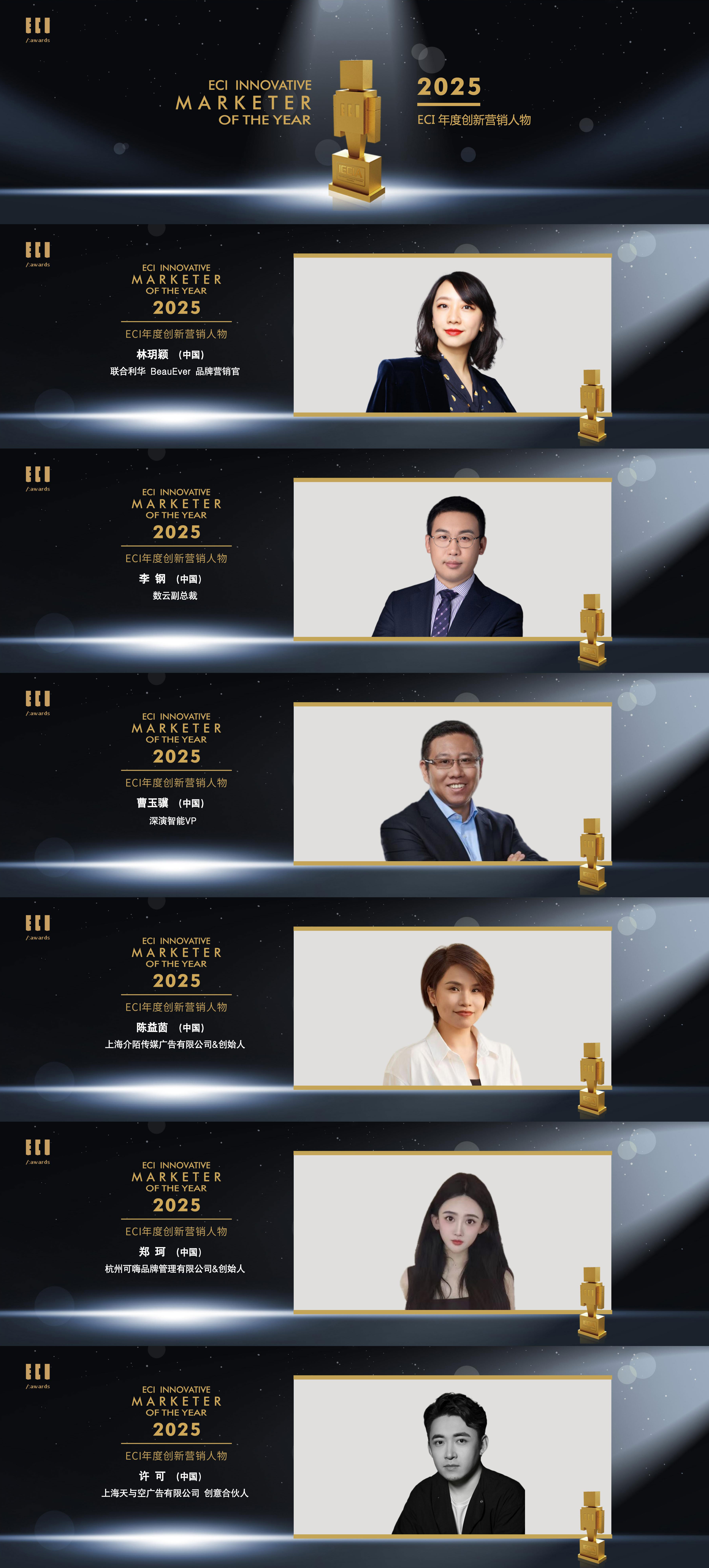 2025年度ECI创新人物七大创新人物奖项获奖者名单如下: