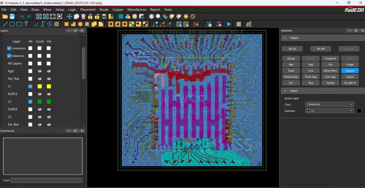 RedPKG是RedEDA平台下专注于芯片封装设计的模块,主要服务于IC设计及封装生产环节。该工具支持Wire Bonding和Flip Chip等主流封装类型,覆盖单芯片、MCM、SiP等应用场景。其功能包括DIE PAD参数设置、Ball参数设置、Net In导入、布局布线及加工数据输出,设计精度可达纳米级别。RedPKG支持通过Excel表格快速导入Pin信息并完成映射,自动生成DIE或Ball封装模型,并输出CSV格式网表。界面简洁,工程师上手快,支持中英文自由切换。此外,工具具备精细化层叠管理与Package透明化显示功能,便于内部互连观察。