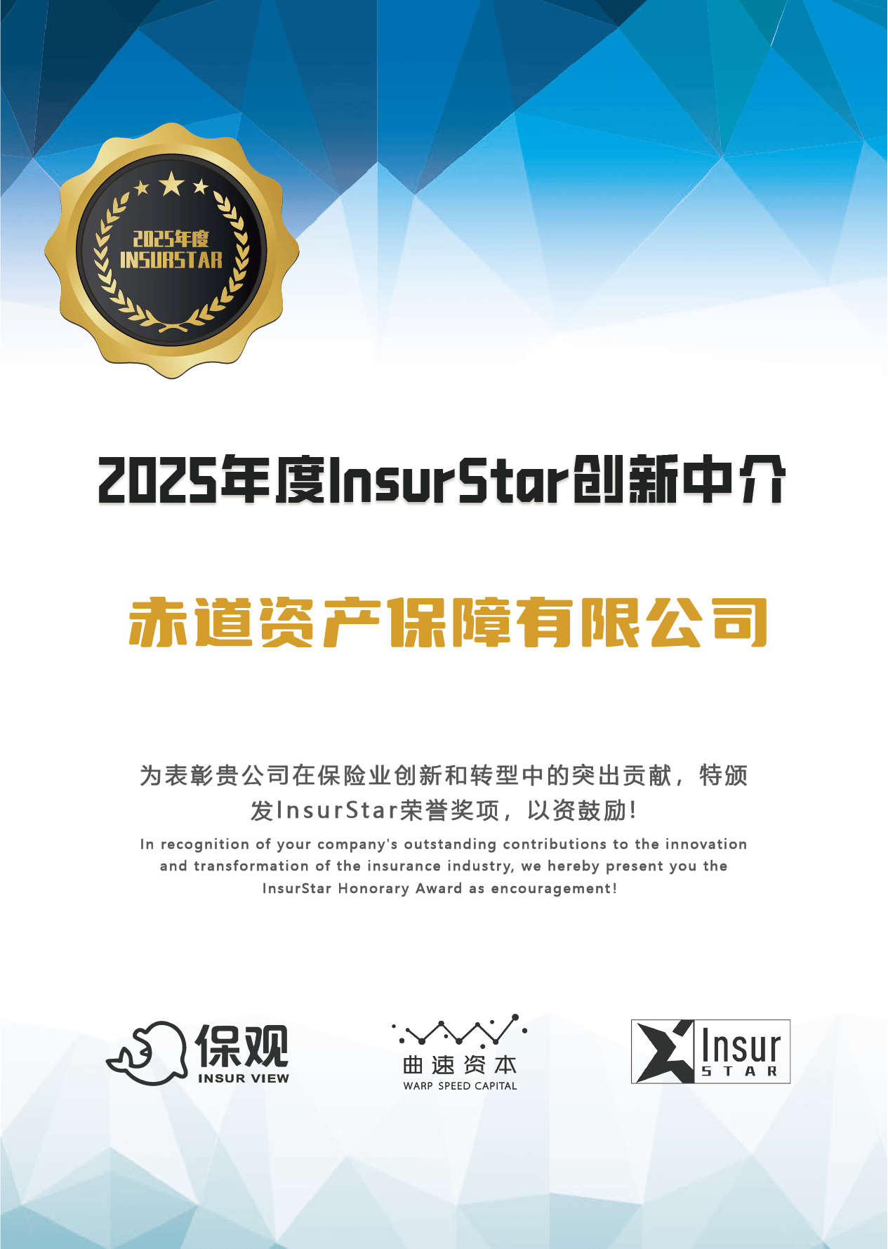 作为保险行业的重量级评选,保观·InsurStar榜单具有极强的权威性与公信力,历年来筛选出了一批兼具创新价值与市场影响力的获奖企业及产品。今年活动于11月10日正式启动,以“专业、公正、权威”为核心原则,通过“网络投票+专家评审”双维度考核,从全行业200余项报名项目中选出了30家机构及58个优秀产品与服务。 其中,赤道资产保障有限公司获颁“年度InsurStar创新中介”,其专业能力得到业界瞩目。