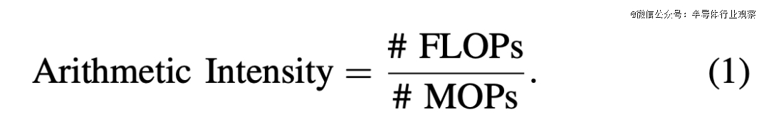 衡量性能瓶颈的一种常用方法是计算仅计算 Transformer 编码器和仅计算解码器模型所需的总 FLOP 数。然而,单独使用这一指标可能会产生很大的误导。因此,我们需要研究相关操作的算术强度。算术强度是指从内存加载的每个字节可以执行的 FLOP 数。它可以通过将总 FLOP 数除以访问的总字节数(也称为 MOP,即内存操作数)来计算。