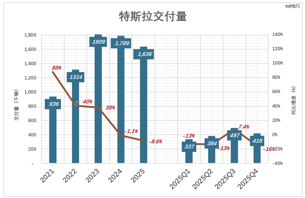 2025年Q4,交付41.8万辆、同比下降15.6%;
