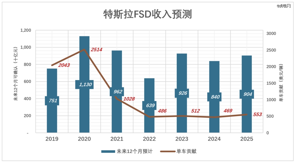 每卖一辆车,未来12个月获取不到600美元FSD收入,想象空间极为有限。