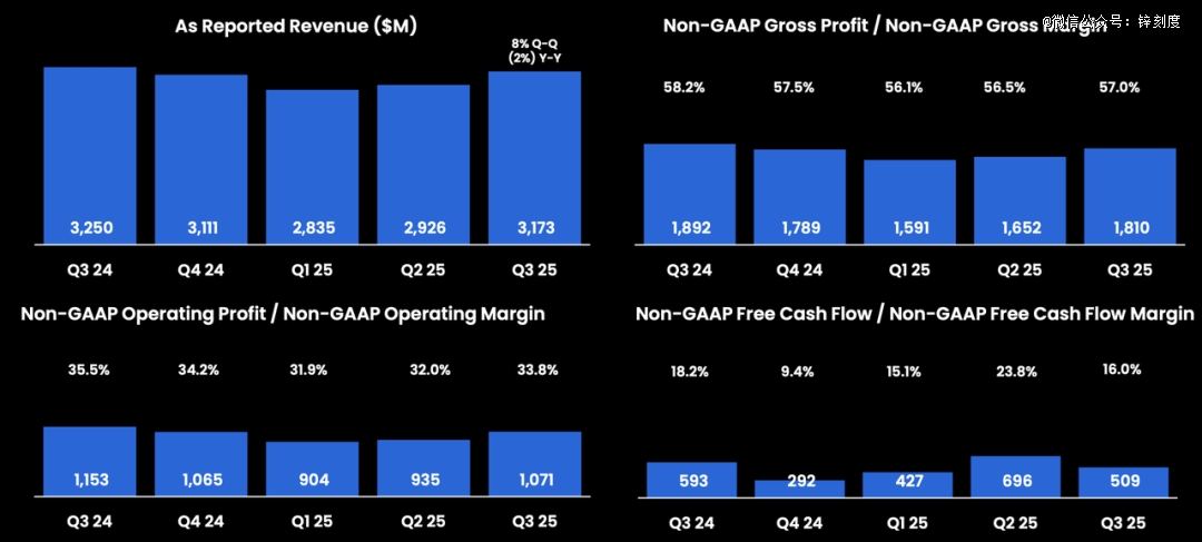 再譬如,恩智浦2025年第三季度营业收入为31.73亿美元,同比下降2.37%;净利润为6.31亿美元,同比下降12%。