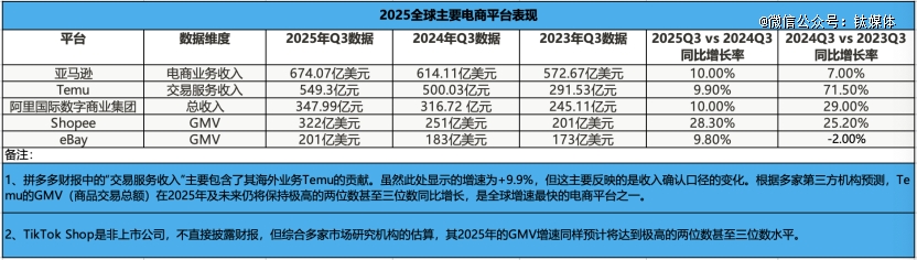 “火”的一面是,拼多多海外版Temu、SHEIN、速卖通、TikTok Shop等新兴力量的狂飙突进。财报数据显示,Shopee依然保持着30%左右的高速增长,而更大的变量——Temu与TikTok Shop,则被多家第三方机构预估增速仍将达到极高的两位数甚至三位数,扮演着市场鲶鱼。