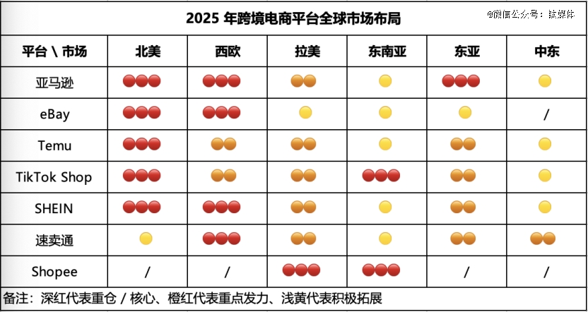 (2025年跨境电商平台全球市场分布图,制图:出海参考)
