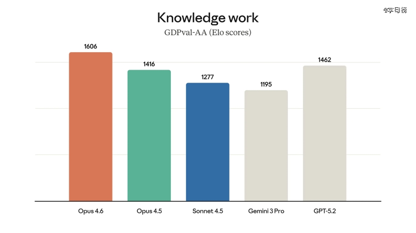 在知识工作能力的评测GDPval-AA 上,Opus 4.6比OpenAI的GPT-5.2高出约144Elo分,比自己的前代Opus 4.5高出190分。这个测试涵盖了金融、法律等领域的实际工作任务,比如制作财务分析报告、起草法律文件、做市场调研等。