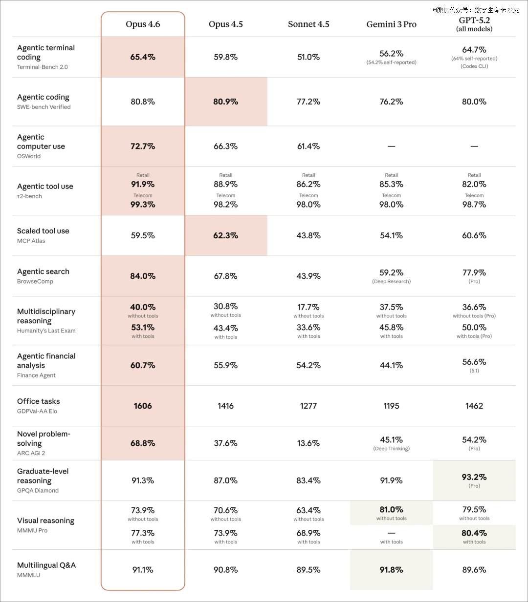 这次Opus 4.6的跑分确实很漂亮,我挑几个重点说说。
