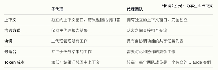 跟Claude Code里面之前subagents也就是子代理不同的点在于,子代理在单个会话中运行,只能向主代理报告结果,而Agent Teams是一个团队,团队成员可以直接与各个团队成员互动,无需通过负责人。