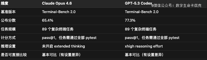 Claude Opus 4.6得分65.4%,GPT-5.3 Codex得分77.3%,OpenAI领 先11.9个百分点。