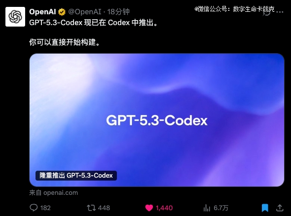 GPT 5.3 Codex也来了。