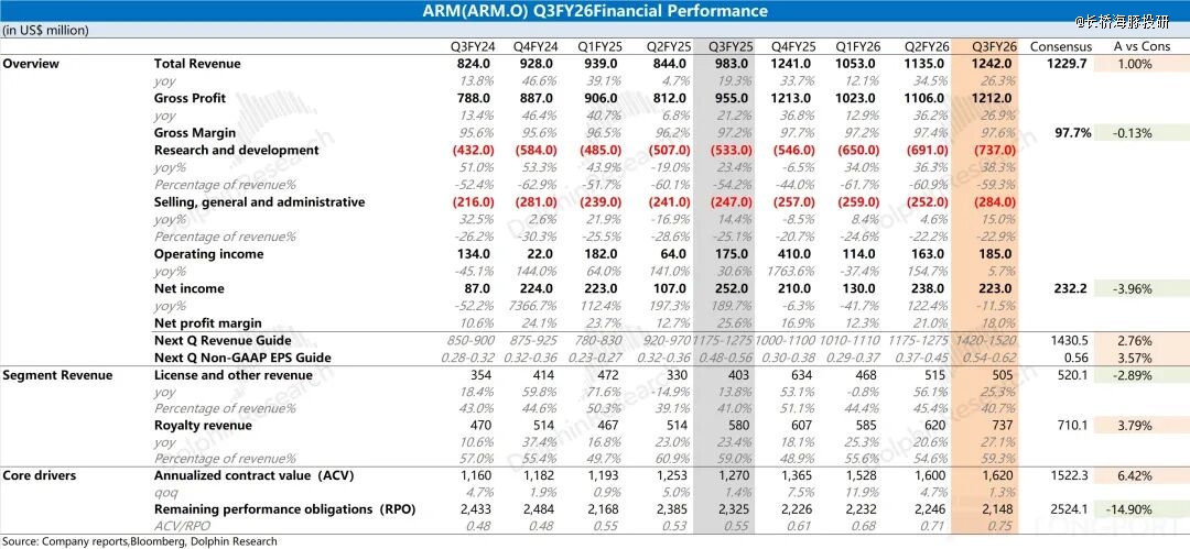以下是海豚君关于 ARM 财报及相关数据图表: