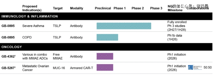 该药物于2025年12月初提交IND并获批,即将进入I期临床。GB-4362与罗斯威尔公园综合癌症中心合作开发,由其赞助并预计在2026年启动I期临床试验。
