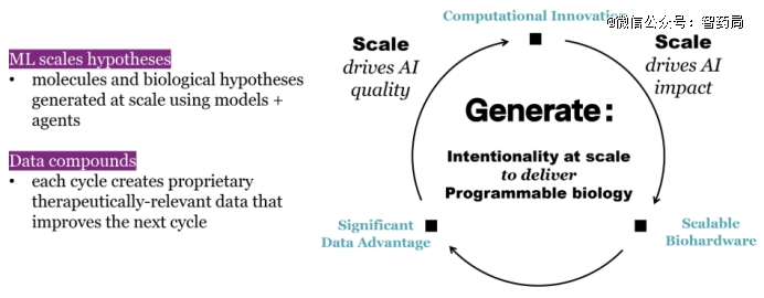 Generate希望制造差异化的蛋白质治疗药物,于是提出可编程生物学的概念。所谓的可编程生物学,意味必须能在治疗领域和蛋白质模式中,以预定的意图设计和编写生物功能。