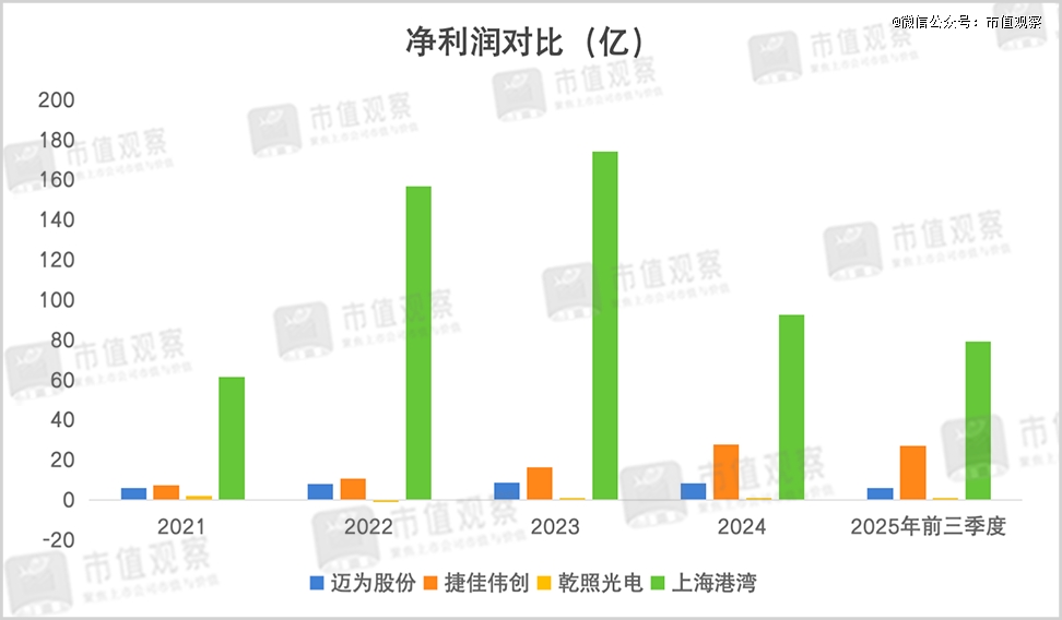 近年来,在光伏行业下行周期下三家盈利也出现了分化,捷佳伟创维持着中高速增长表现*,同时规模*,这离不开其TOPCon设备市场份额*以及多种技术路线的布局。而迈为股份自2023年后净利润陷入负增长,受行业影响较为明显。