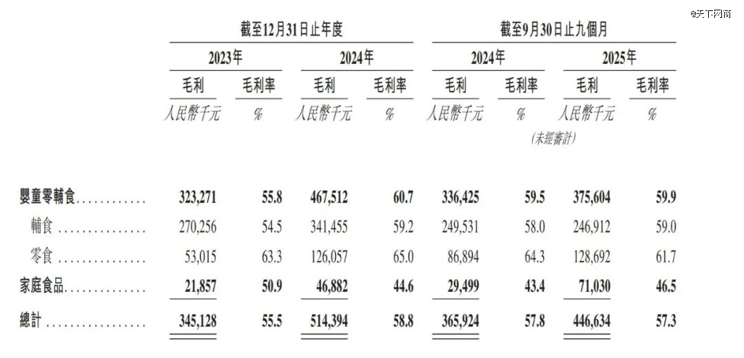 招股书显示,爷爷的农场毛利率达55%-59%,在婴童零辅食行业并非孤例。“高溢价”正是这一赛道中黑马品牌的普遍特征。