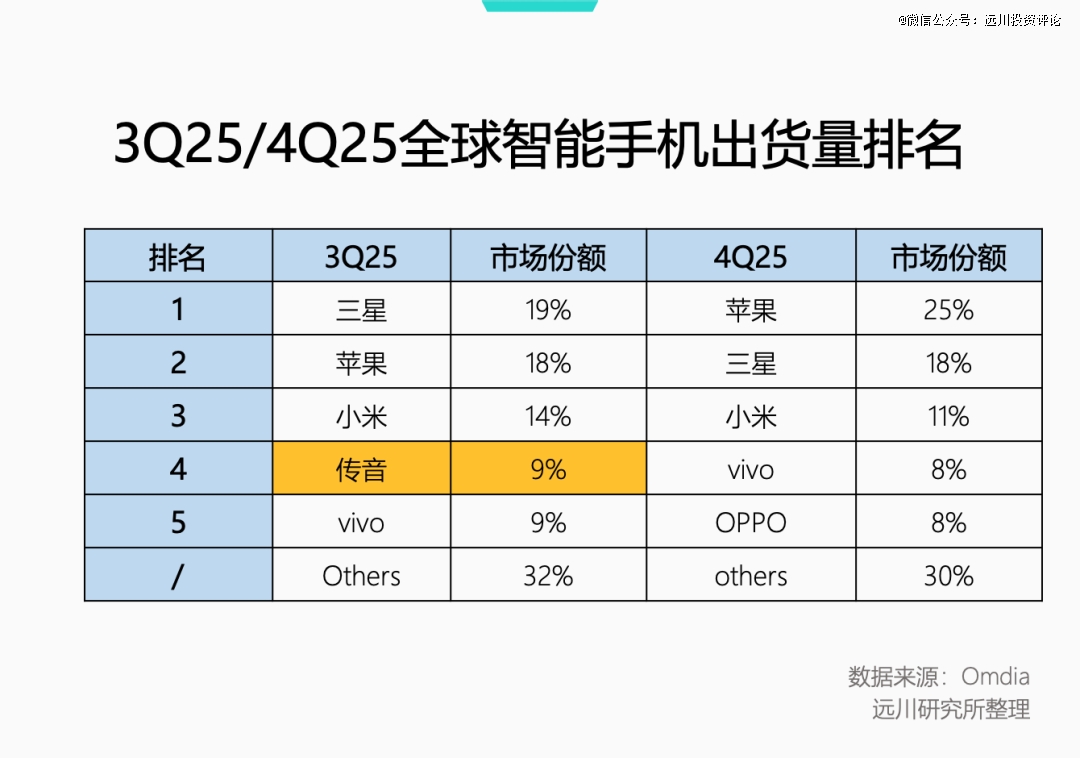 单季度的业绩受当季新机型上市影响较大,但即便按照全年业绩指引看,传音2025年度营收利润双降,净利润直接腰斩,手机也从全球第四[3]掉进了others[4]。
