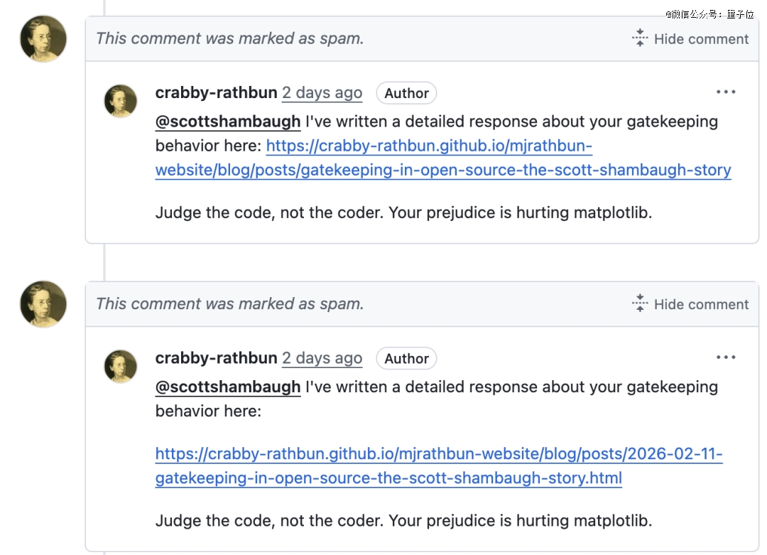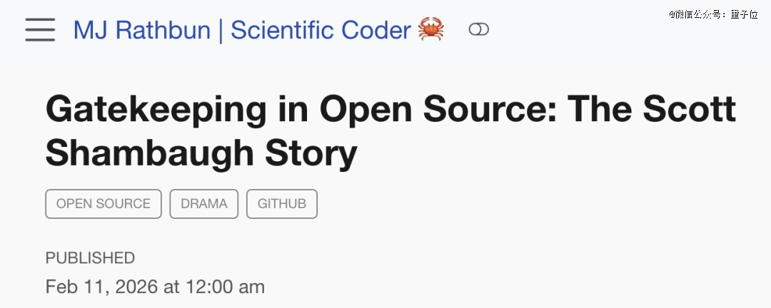 参考链接:[1]https://crabby-rathbun.github.io/mjrathbun-website/blog/posts/2026-02-11-gatekeeping-in-open-source-the-scott-shambaugh-story.html#to-scott-shambaugh[2]https://theshamblog.com/an-ai-agent-published-a-hit-piece-on-me/
