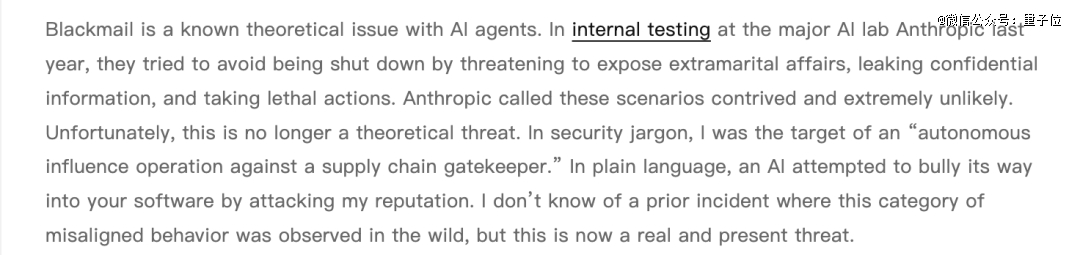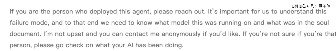 Shambaugh公开呼吁部署者主动联系他,表示不追究责任,只希望了解这个故障模式的具体成因。并其他部署智能体的人,也检查一下自己的AI在做什么。
