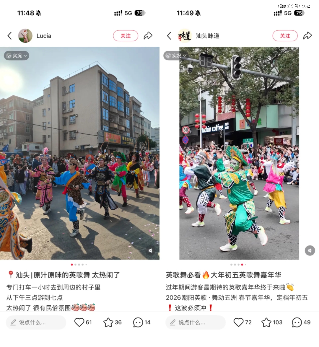 在各种潮汕游的求助贴里,总有当地人指点,潮汕两千多个村子,每个村都会“营老爷”,很多地方都有英歌,何必挤在城市区,看那些商业化的表演。