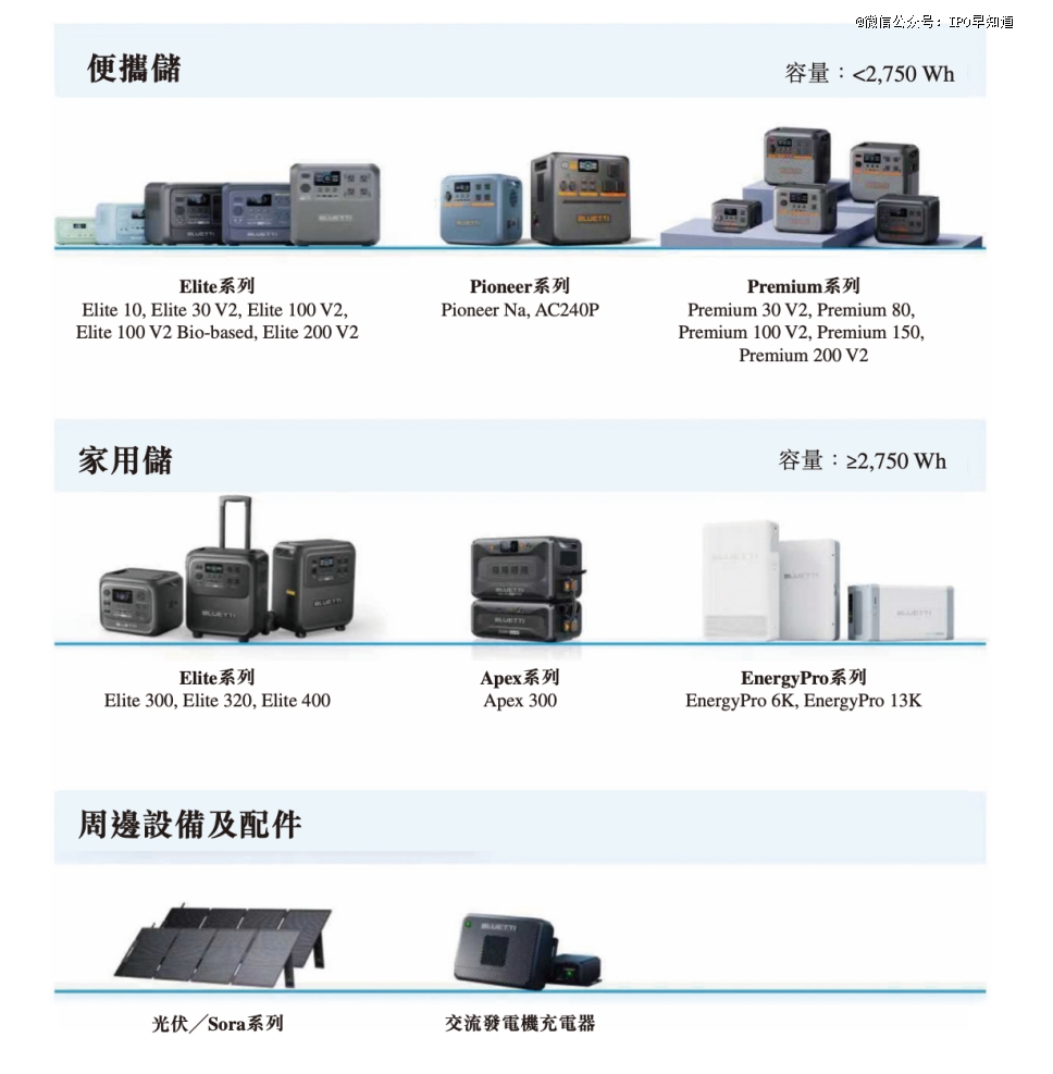 目前,德兰明海已建立了分层产品矩阵,以实现可扩展的应用。其中,德兰明海的主流系列包括为日常电器提供紧凑型入门级电力解决方案的Elite系列;满足用户对更高容量、更长运行时间或可扩展配置的进阶能源需求的Apex系列;融合前沿能源技术并展现其创新能力的Pioneer系列;通过线下销售渠道提供给客户的Premium系列;以及德兰明海为无缝电力备份和能源独立而设计的全屋储能系统的EnergyPro系列。此外,德兰明海亦已构建一个不断扩展的兼容智能周边生态系统。Ecosystem系列包含各类周边产品和配件,例如太阳能板系列及交流发电机充电器。所有这些产品均为补充及扩展德兰明海的储能产品功能而设计。
