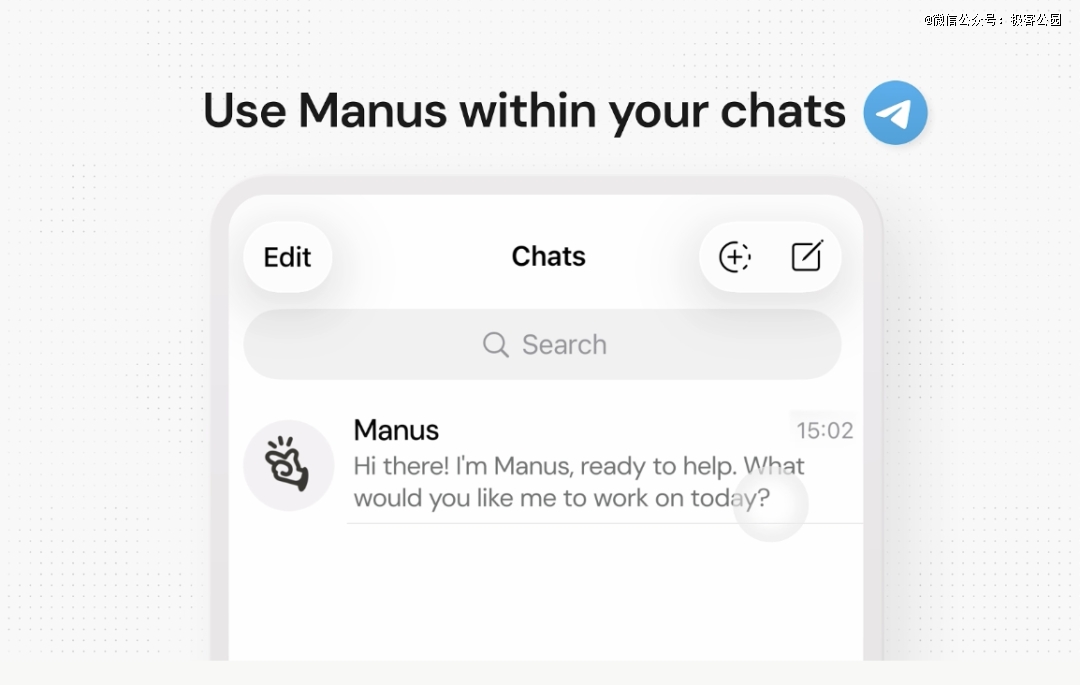 当地时间 2 月 16 日,Manus 宣布推出了一个新功能——Manus Agents。简单说,就是把 Manus 的完整能力塞进了 Telegram,用户扫个码就能在聊天窗口里直接跑复杂任务。