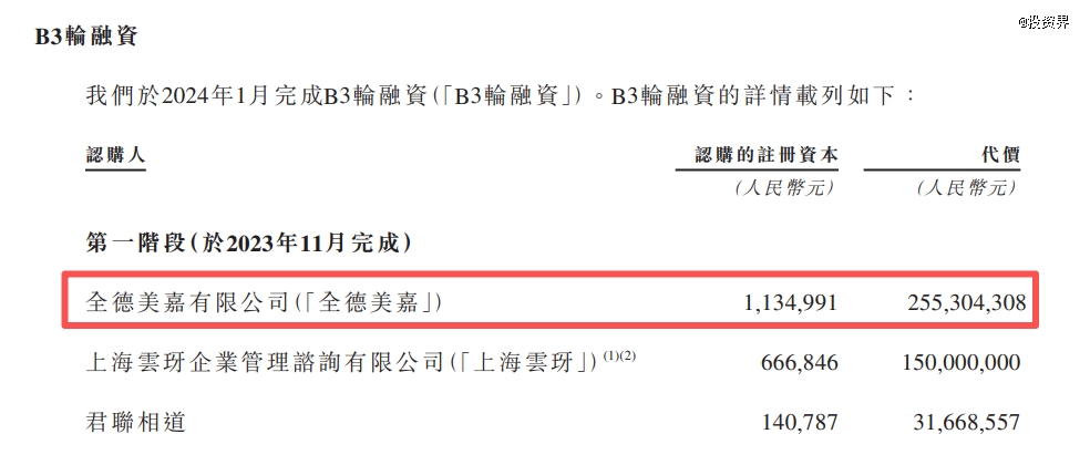 2023年,徐新出手,通过旗下今日资本控股的全德美嘉向智谱投入2.553亿元人民币。根据招股书信息,彼时智谱正处于B3轮融资阶段。
