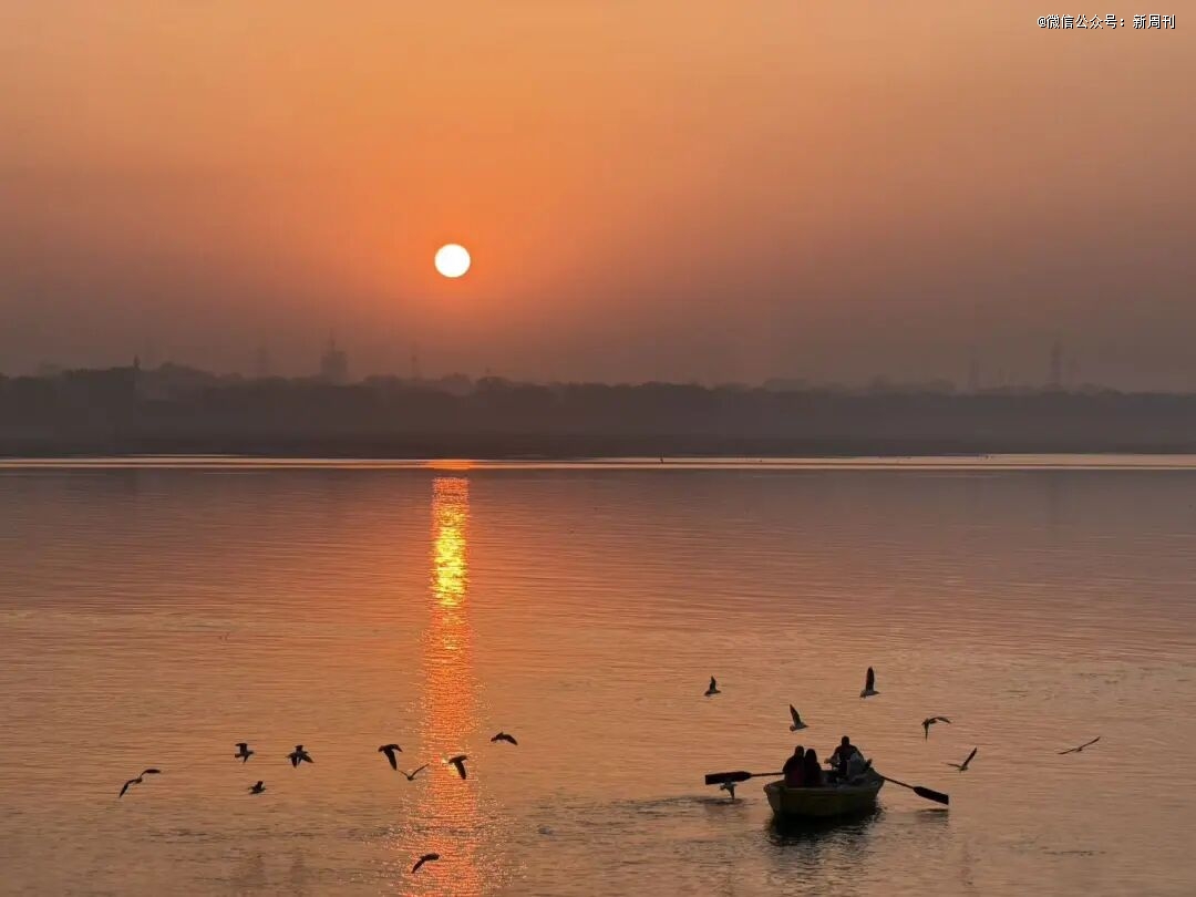 春节期间,我主要待在瓦拉纳西和阿拉哈巴德,几乎每天都去拍日出和日落。日出时光线柔和,人比较少,氛围和白天不一样。在阿拉哈巴德,我参加了一个叫Magh Mela的大型朝圣沐浴节,每天有几万到十几万人到恒河与亚穆纳河交汇处洗澡。恒河的夜祭和晨祭非常有美感,当地居民很多都是全家参加,像狂欢一样,而不是那种肃穆的宗教氛围。